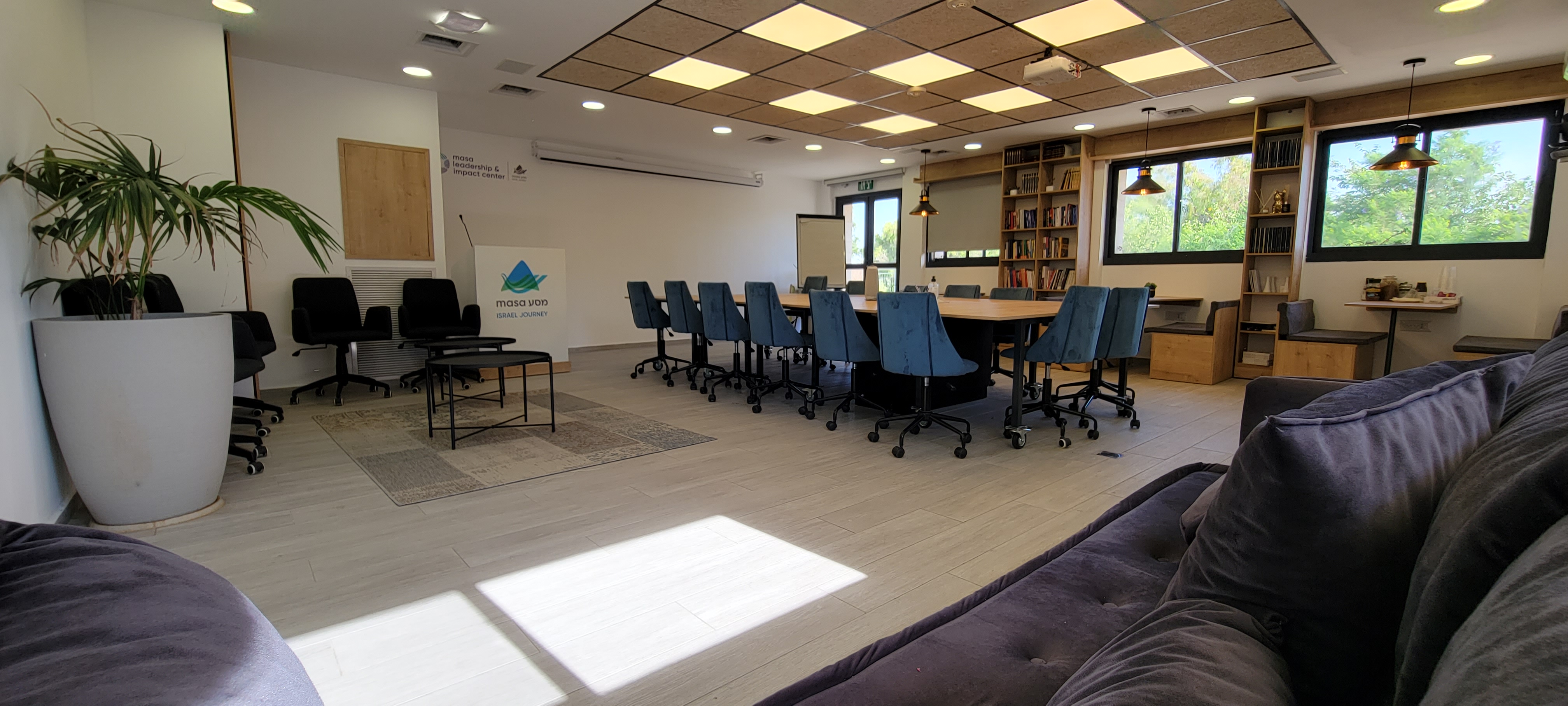 After a successful renovation of their offices, Masa hired us again to build their brand new, state-of-the-art leadership centre. The Masa Leadership Center, located in the Kiryat Moriah campus, was the latest addition to Masa's facilities. After a successful expansion downstairs, in the main offices, we continued working together to build a hub for young professionals to come together and learn how to be the new leaders for the future. It is a dynamic high tech space, boasting the newest technologies, designed to foster learning, collaboration, and innovation. Nili Architecture transformed the space into a vibrant, modern center that supports leadership development and community engagement.